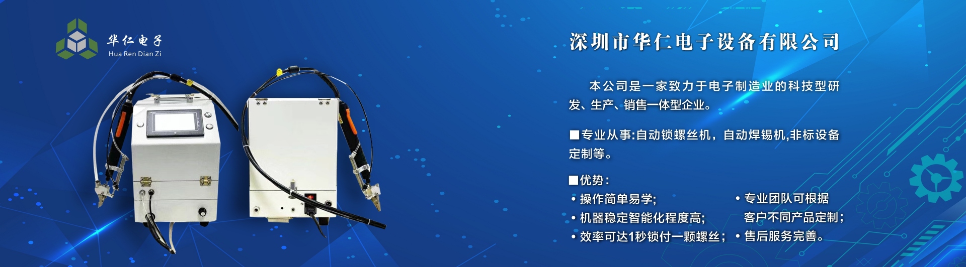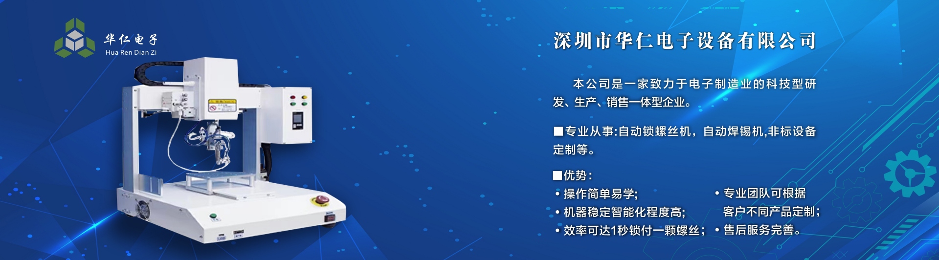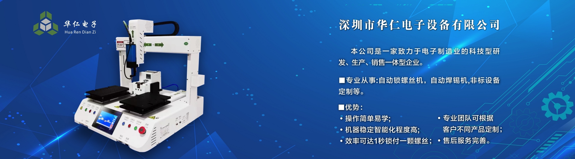 深圳市華仁電子設(shè)備有限公司是一家致力于電子制造業(yè)周邊設(shè)備的科技型研發(fā)、生產(chǎn)、銷(xiāo)售一體的企業(yè),專(zhuān)業(yè)從事:自動(dòng)鎖螺絲機(jī);自動(dòng)焊錫機(jī);非標(biāo)設(shè)備定制機(jī)等,公司長(zhǎng)期以來(lái)在行業(yè)中積累了豐富的經(jīng)驗(yàn),擁有專(zhuān)業(yè)的研發(fā)、技術(shù)、銷(xiāo)售支持工程團(tuán)隊(duì)、各高級(jí)技術(shù)人才為客戶提供優(yōu)質(zhì)產(chǎn)品和服務(wù),同時(shí)不斷吸取國(guó)內(nèi)外先進(jìn)技術(shù),更準(zhǔn)確及時(shí)地為客戶提供優(yōu)質(zhì),性?xún)r(jià)比高的產(chǎn)品、公司以專(zhuān)業(yè)的售前、售中、售后服務(wù)贏得了客戶的信賴(lài)和好評(píng),為客戶提供先進(jìn)自動(dòng)化設(shè)備一體式解決方案、
